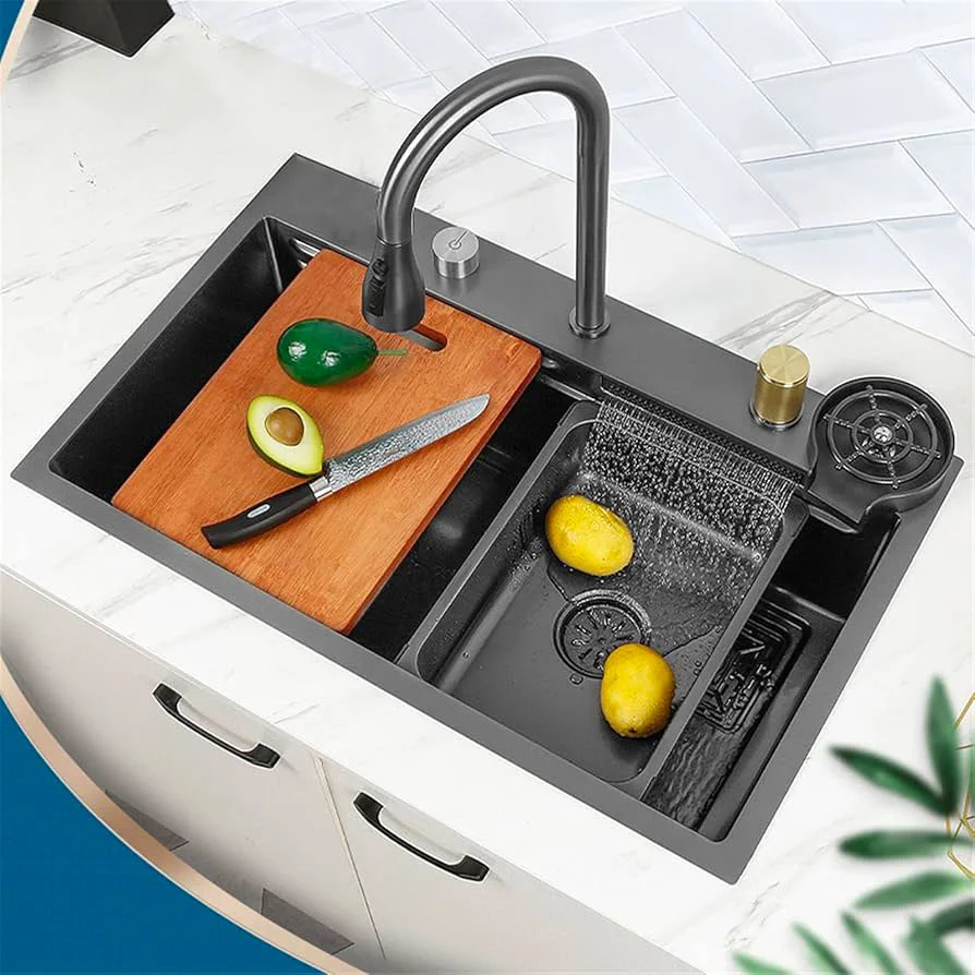 سینک آبشاری ساده دودی سایز 46×75، طراحی این نوع سینک یک طراحی جدید و منحصر بفرد است که نیازهای شستن را در یکجا حل کرده است. سینک آبشاری ساده دودی سایز 46×75 نظم و زیبایی و هماهنگی خاصی به آشپزخانه شما میبخشد. این نوع سبک از سینکها دارای طراحی مینیمال که مناسب است برای آشپزخانه های لوکس.